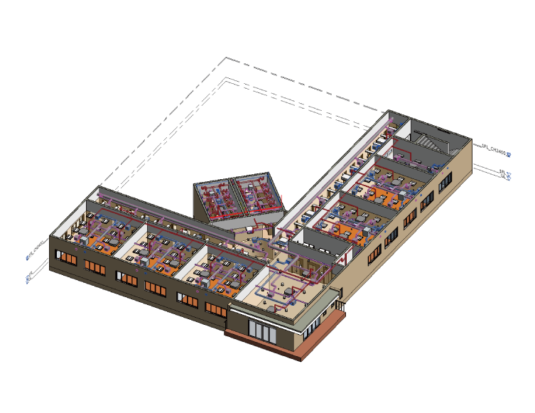 BIMをフル活用し、建築設備各種のプランニング、実施設計、施工図、「容量・風量・能力・揚程等」各種設備に必要な計算値算出を行います。